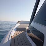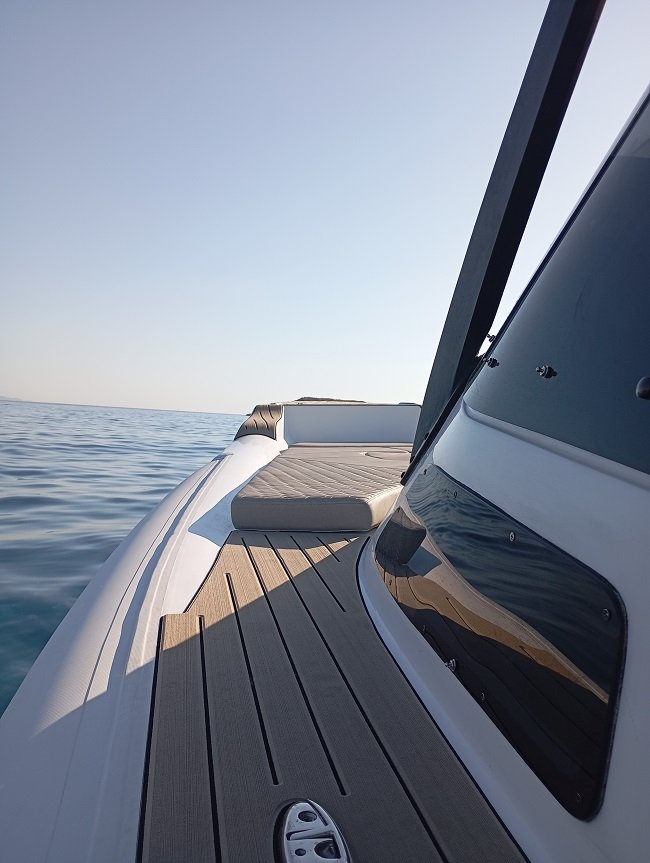 Το µεγαλύτερο µέρος από το ταβάνι της καµπίνας είναι ελεύθερος χώρος, και πιστεύω πως ένα ακόµη µαξιλάρι πάνω στο κεκλιµένο της κονσόλας, θα προσδώσει µεγαλύτερη άνεση στη χρήση. Η πόρτα της καµπίνας είναι δίφυλλη από σκούρο plexiglass, µε καπάκι αερισµού.